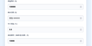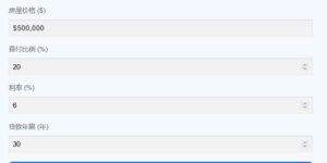 买房计算器 🏠 买房计算器 房屋价格 ($) 首付比例 (% …